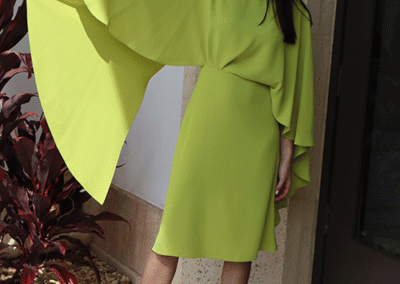 Marilyn’s Anka Lime Boat Neck Collar 3/4 Sleeve Draped Dress