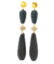 BIBI THEADED GLASS DROP LONG PIERCED EARRING