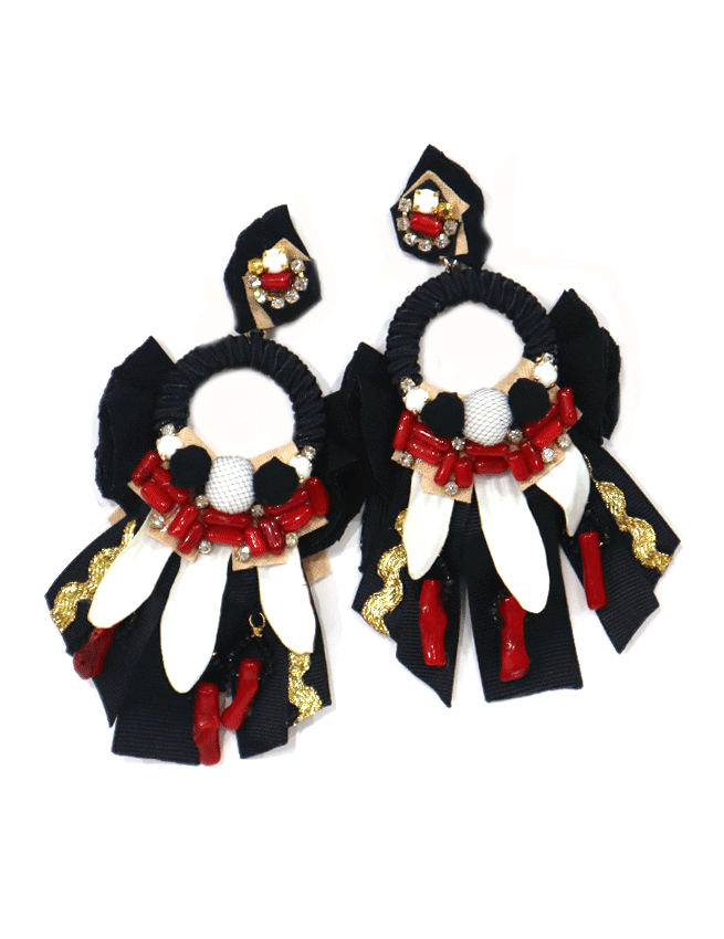 - Ribbons and chiffon embroidered with coral and Swarovsky crystals paste beads