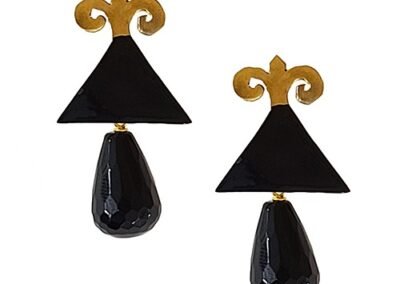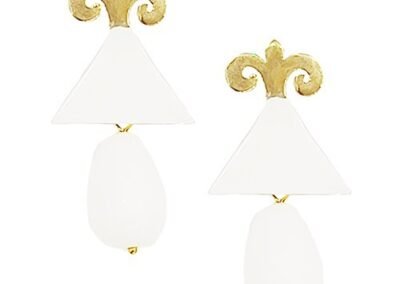 Marilyn Handmade Italian Gold-Plated Enameled Triangle and semi-precious Stones and Pearl removable Drops, Pierced Earring