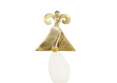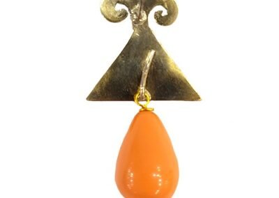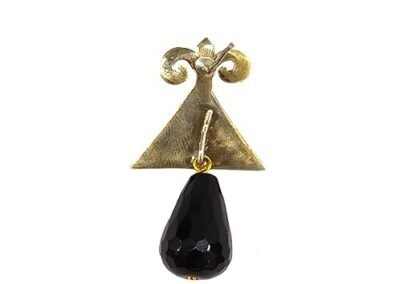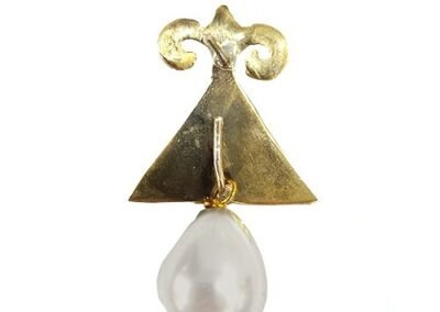 - Handmade Italian Gold-Plated Enameled Triangle and semi-precious Stones and Pearl, removable Drop, Pierced Earring