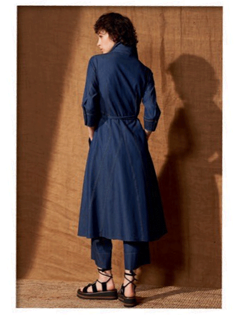 • Style: Collar, 3/4 Sleeve, 2 Side diagonal Pockets 3/4 Length Belt Included