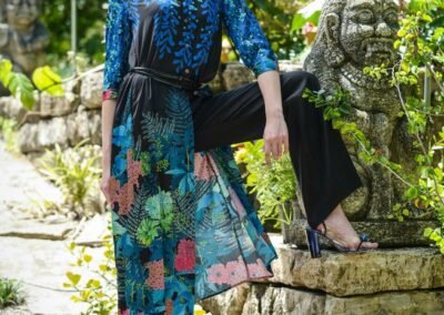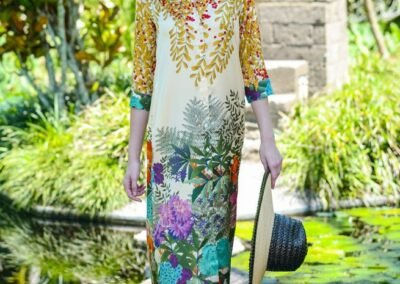 Marilyn's Floral Printed Silk Maxi Dress is a gorgeous printed silk button down dress. The dress has 3/4 length sleeves. The print is a gorgeous multicolor floral design. Available in Gold, Blue, and Black.
