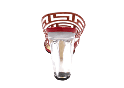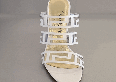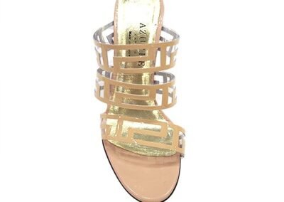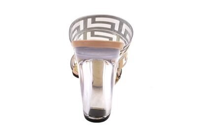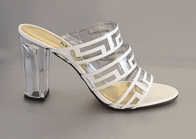 Marilyn's French aztec heel is an integration of European style and fun! The straps have a geometric chain that are sure to make a statement!