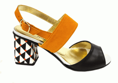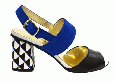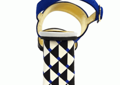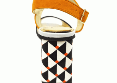 Marilyn's French geometric heel is an integration of unique European style and design. This shoe adds a pop of color to your outfit and features a playful patterned heel detail.