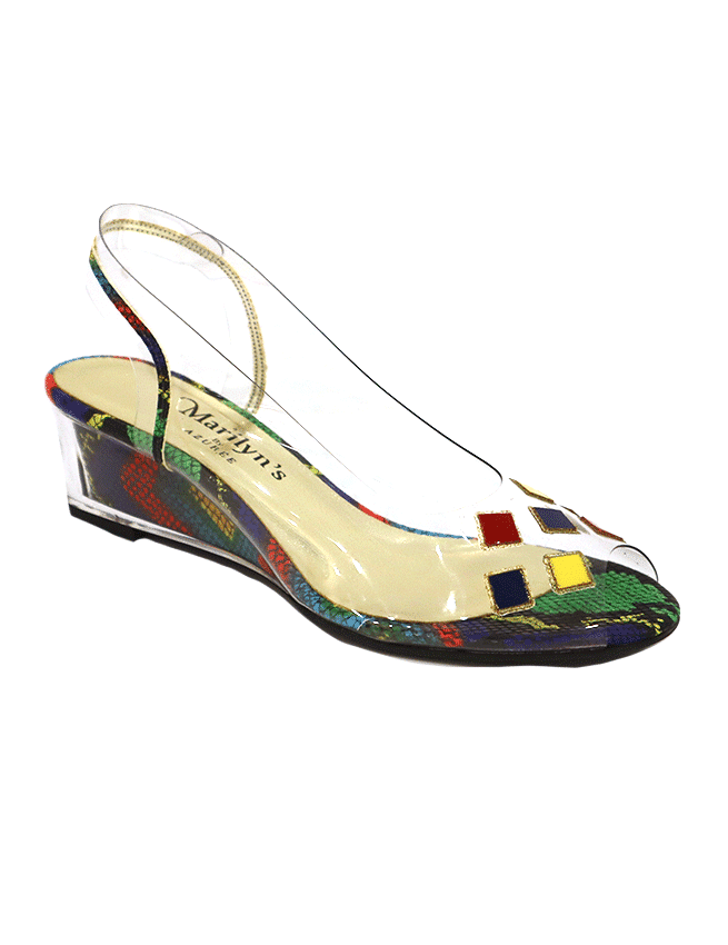 Marilyn's French margarita wedge is an integration of European style and comfortability. This shoe sports a colorful, edgy look with resin charms. It can be worn for a casual outing or a nice brunch with the girls!