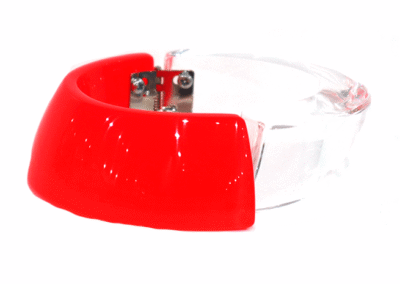 Saint-Julien, François-Xavier and Murielle Guyot realize necklaces, bracelets, rings, earrings, under the label "MX Design". The material, the plexiglass. Great ideas, hard work and virtuoso fingers give the material, banal at first glance, its nobility.