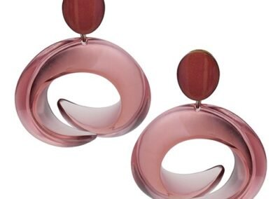 Marilyn's French plexiglass earrings MX443 are truly one of their kind. They shine so vibrantly in the sunlight and are very lightweight for easy, comfortable wear. Each earring is carved by hand from hard materials in France. The material starts as leaves and blocks, and then is followed with some machining, sanding, and polishing to make it transparent. From there, it is molded and carved into geometric shapes.