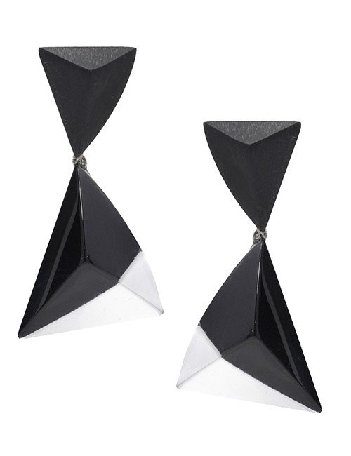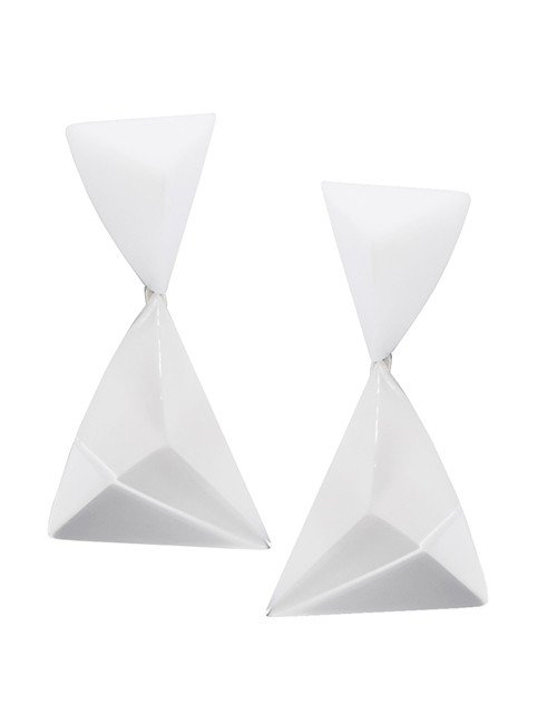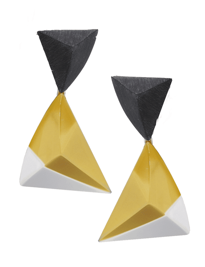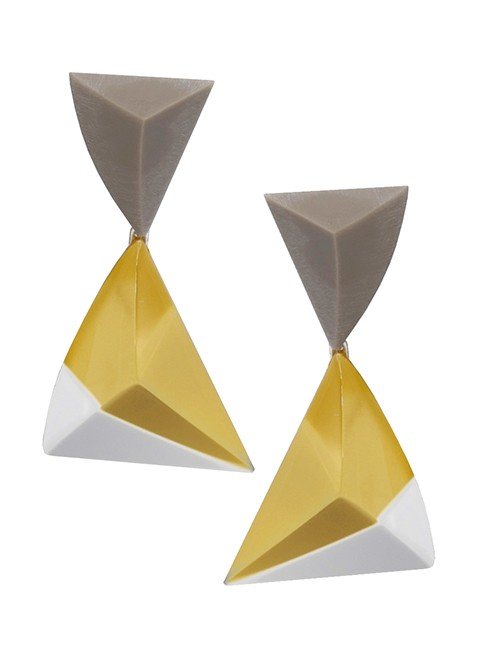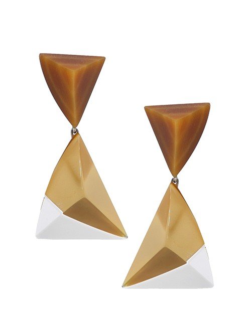 Marilyn's French plexiglass earrings MX632 are truly one of their kind. They shine so vibrantly in the sunlight and are very lightweight for easy, comfortable wear. Each earring is carved by hand from hard materials in France. The material starts as leaves and blocks, and then is followed with some machining, sanding, and polishing to make it transparent. From there, it is molded and carved into geometric shapes.