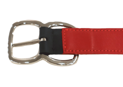 In detail, the belt is made of leather and silver-plated with an adjustable fit. It comes in two sizes: small (85 cm) and medium (90 cm). And the belt is reversible, so can be worn as red or black.