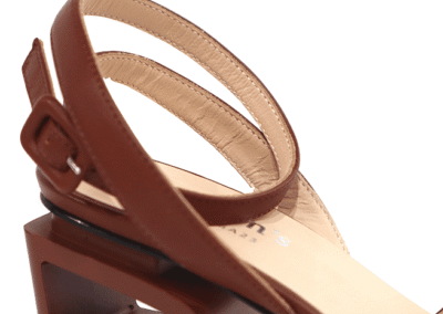 In detail, the heel is made of genuine Italian leather with a beautiful, brown bodice. It has a block heel that measures 3 inches high. And the shoe is open toe and has an adjustable ankle strap for comfortable wear.