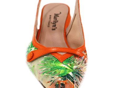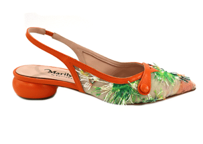 In detail, the heel is made of genuine Italian leather with a colorful, embroidered bodice. It has a round heel that measures 1 inch high. And the shoe comes to a point with a closed-toe and has an elastic ankle strap for comfortable wear.