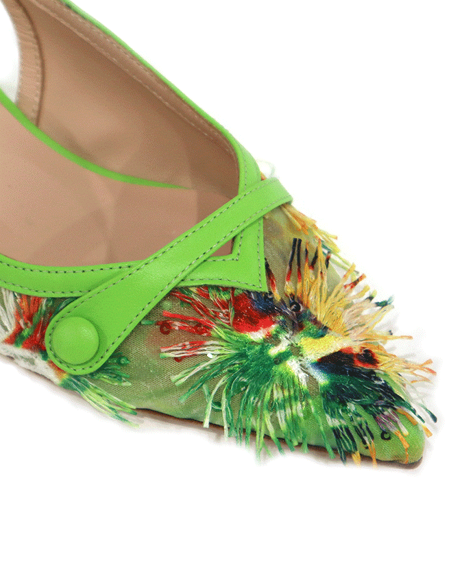 Marilyn's Happy Italian Lime Confetti Print Flats is a sophisticated, original Italian design. Quality, style, and comfortability are at the forefront of this shoes' craftmanship. The heel elevates any outfit, whether that be for a night out or even everyday errands. As they say, a gal is never fully dressed without a smile and fabulous shoes!