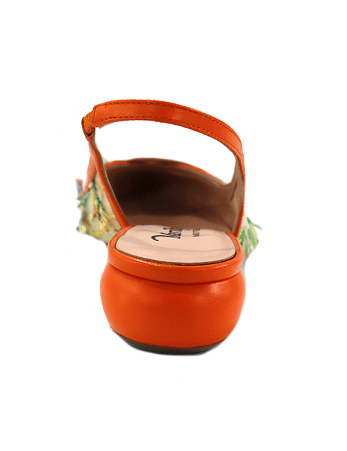 In detail, the heel is made of genuine Italian leather with a colorful, embroidered bodice. It has a round heel that measures 1 inch high. And the shoe comes to a point with a closed-toe and has an elastic ankle strap for comfortable wear.