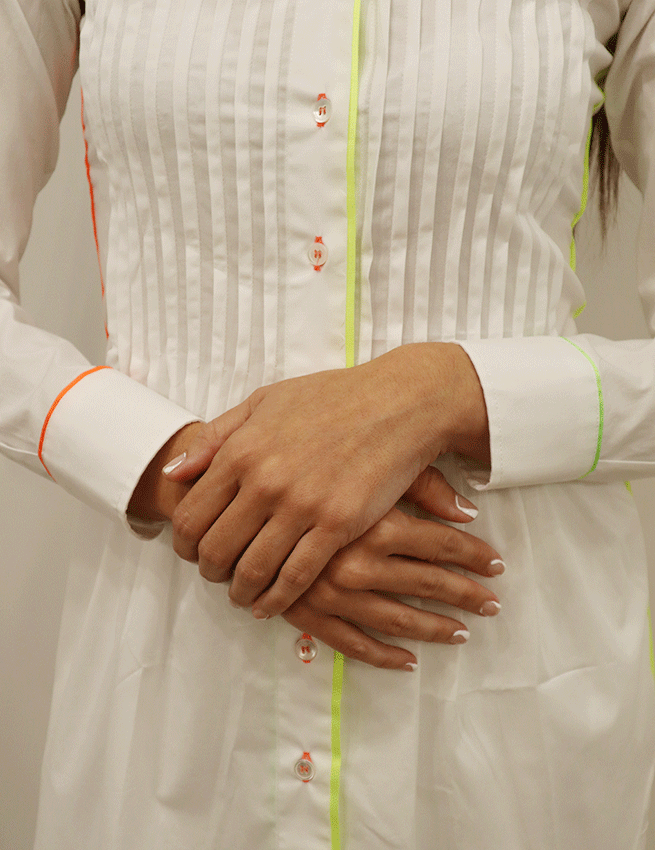 MARILYN’S WHITE LONG BLOUSE NEON TRIM LONG SLEEVE