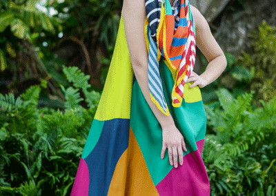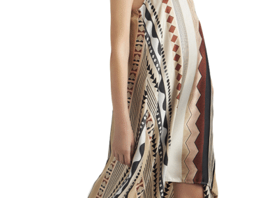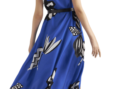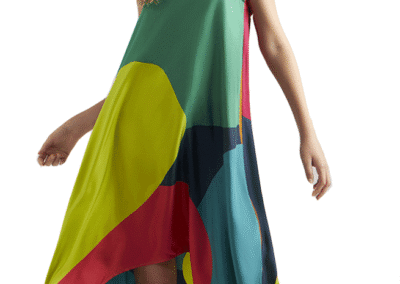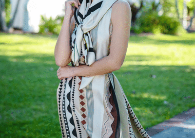 Marilyn's Italian silk print dress is apart of Marilyn’s line of signature silk scarves, tops, and dresses produced in collaboration with Italian textile manufacturer, Lariseta. Since 1945, Lariseta has been printing, weaving, and producing fashionable silk scarves, foulards, and accessories on the shores of Lake Como contributing to popularizing the mark of excellence of Como silk on an international level.