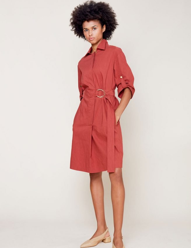 Marilyn's Marta Dress is not one to sit in the closet. It's perfect for weddings, dinners, and other special events. You can dress it up or down with ease. Marilyn's Marta Dress is a cotton/linen mix with pockets, perfect tailoring, and a leather detail on the belt.