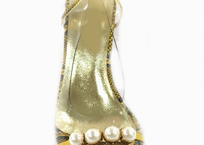 The Shoe styles are designed with a lot of jewelry dedicated to highlight a silhouette. In this way, the "Cristal" line acts as a transparent frame around the foot. The styles evolve over collections, adorned with stones, Swarovski rhinestones, and even original paintings done by hand.