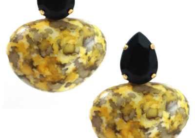 Marilyn's Spanish artsy resin earrings are truly a work of art. Their design reflects Spain's artistic and lively culture. These earrings are perfect for any occasion. They elevate a date night look or even spice up a simple outfit for the beach.