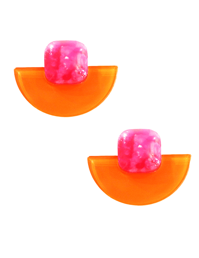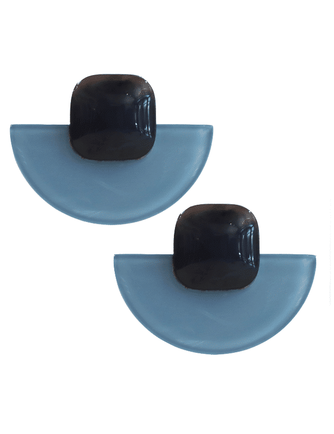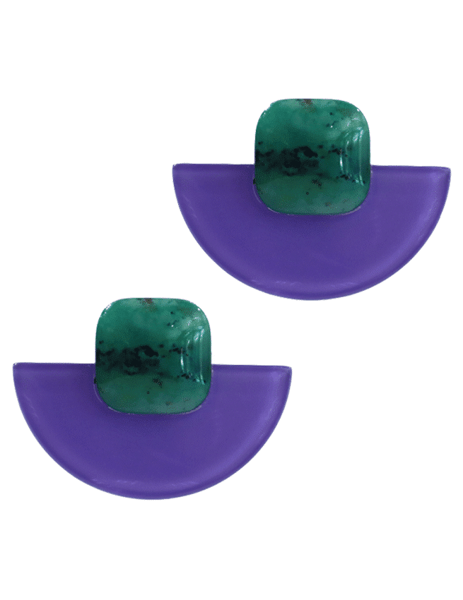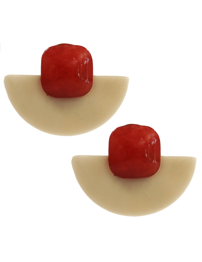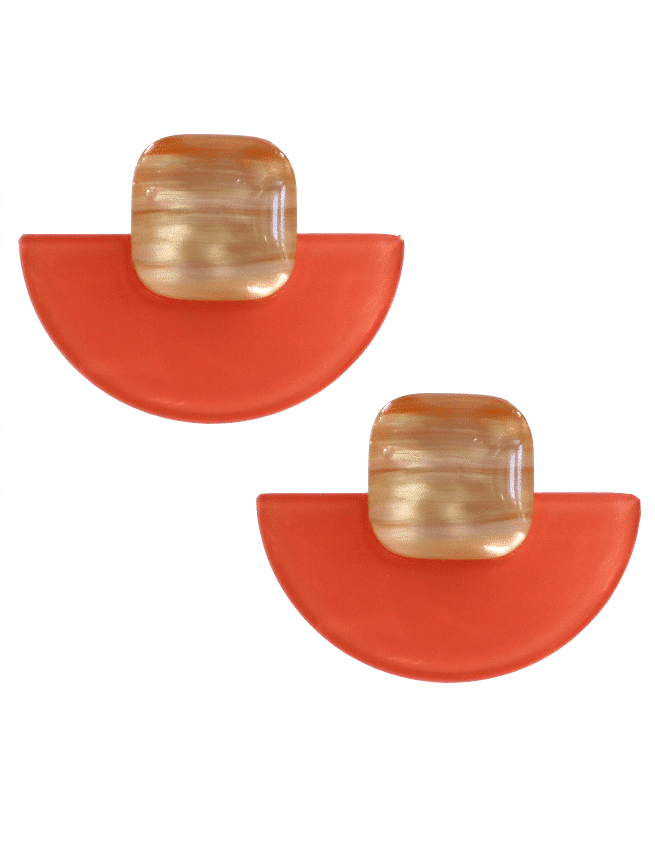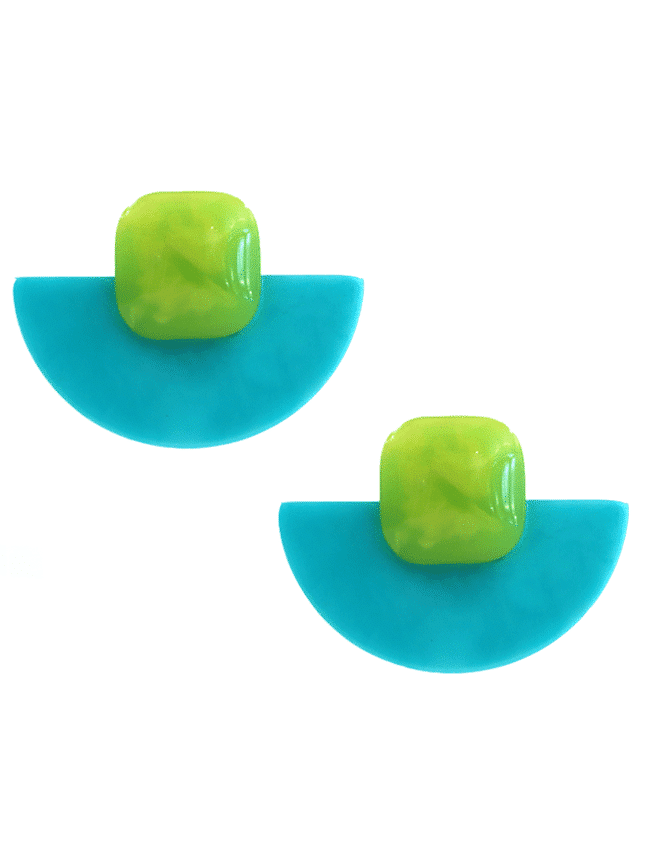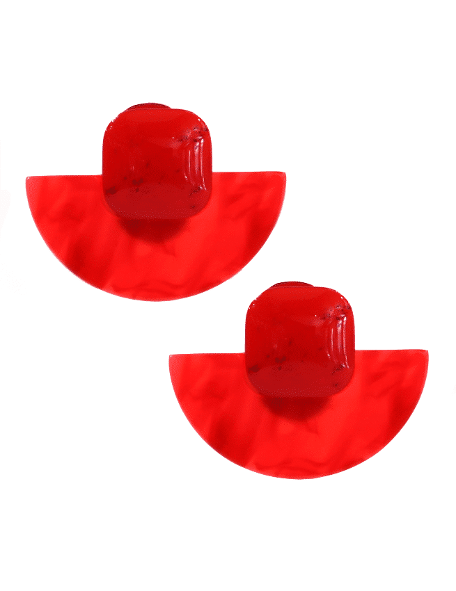 In detail, the earrings are made with resin. They come in eight color options: turquoise, red, cream, black, lilac, peach, light blue, and fuchsia. And they are available in clip only.