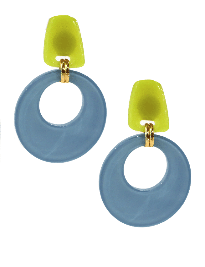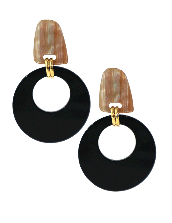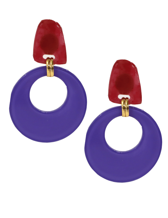 In detail, the earrings are made with resin. They come in four color options: lilac, black, light blue, and peach. And the earrings are available in clip only.