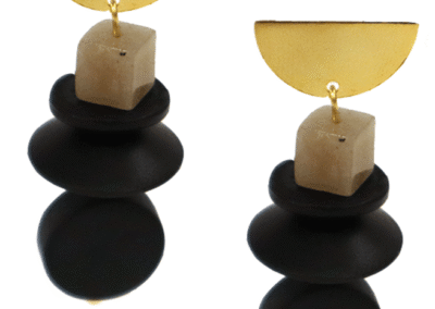 - Made from natural stones, wood, and gold plated, base metals