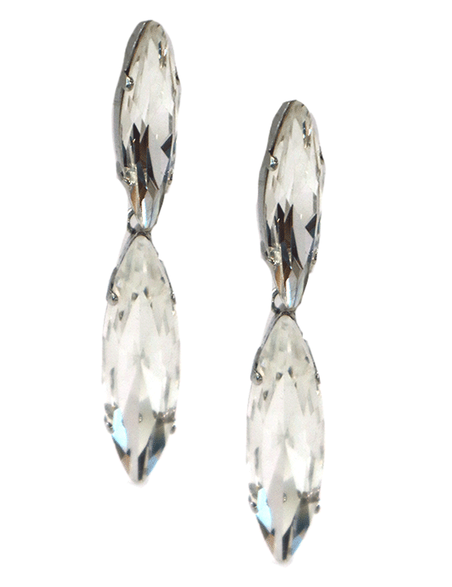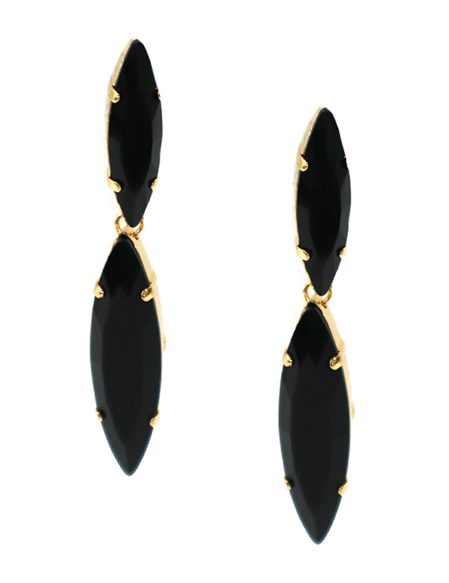 In detail, the earrings are made with resin crystals. They come in two color options: black and silver. And the earrings are available in piereced only.