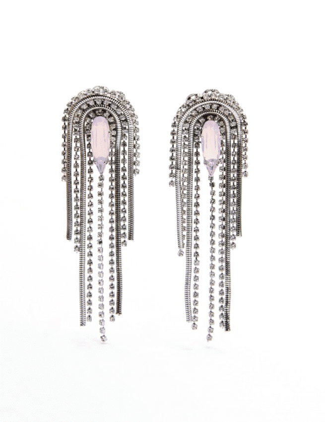In detail, the earrings are made with resin crystals. They come in two color options: lavender and peach. And the earrings are available in clip only.