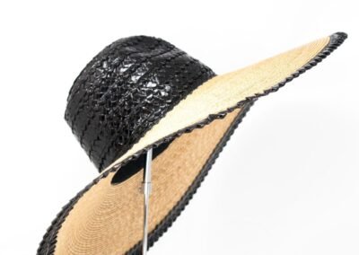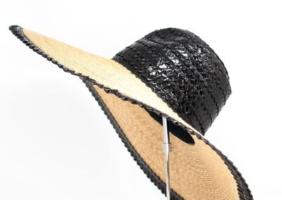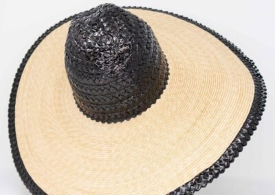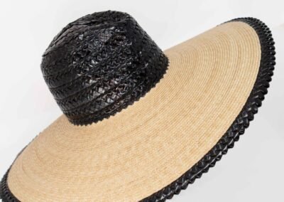 Hat Wide brimmed stitched straw hat with head and edged made with rascello black/natural