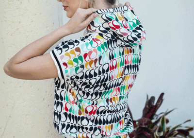 Double Use: the particularity of the prints, where the front and back are never the same, allow the woman to use the garment twice, choosing the side to use depending on the outfit. As if to say, with one boss, you have two.