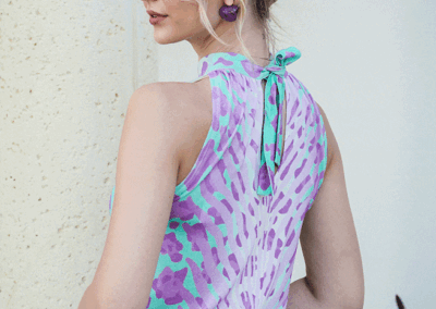 Double Use: the particularity of the prints, where the front and back are never the same, allow the woman to use the garment twice, choosing the side to use depending on the outfit. As if to say, with one boss, you have two.