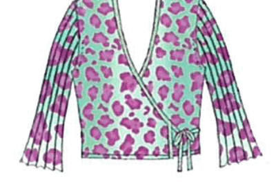 Marilyn’s Fun Knit Pleaded Sleeve Cross Warp Cardigan Print Top